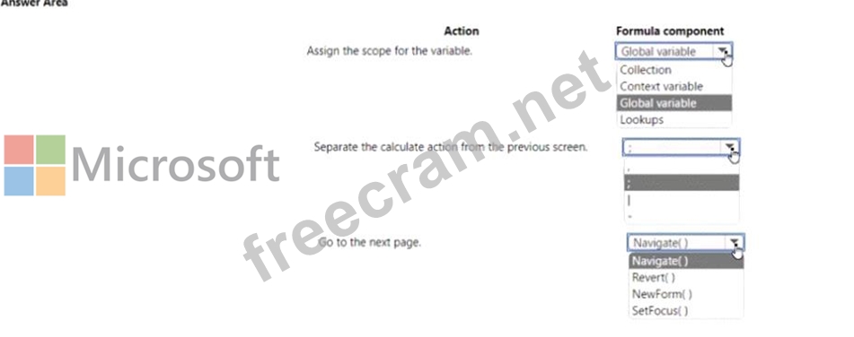 You need to create the formula on the button click. To answer, select the appropriate option in the answer area NOTE: Each correct selection is worth one point.