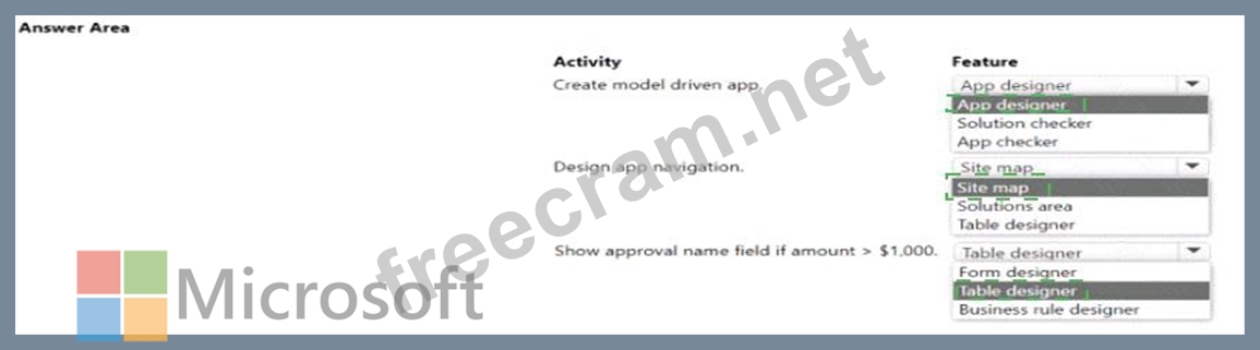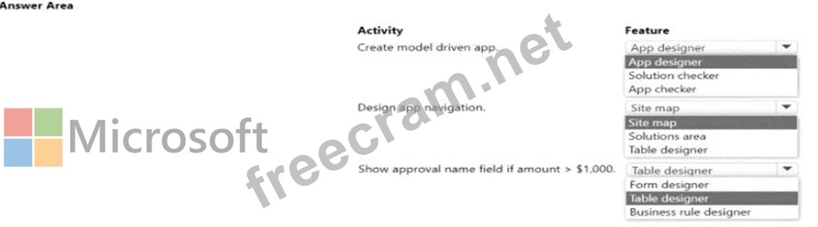 Question 17: A company creates an app that uses Microsoft Dataverse table...