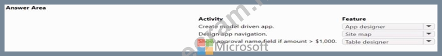 A company uses Power Apps and Microsoft Data verse. You need to perform the following activities: