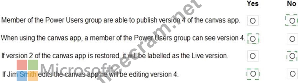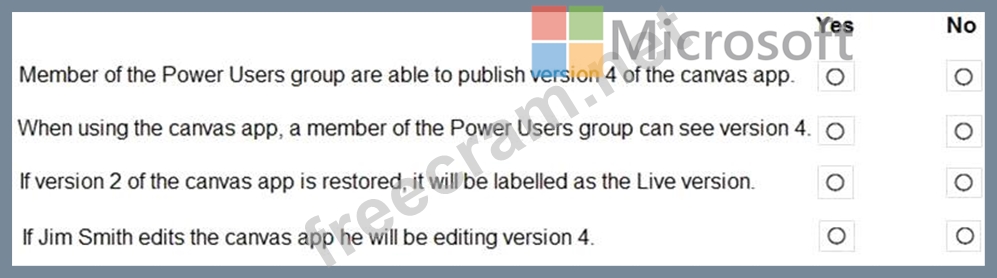 Question 56: You create a canvas app within a Power Platform environment....