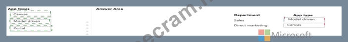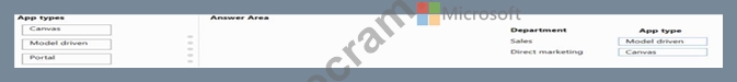 Question 14: A company uses Power Apps. You embed a canvas app in a model...