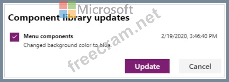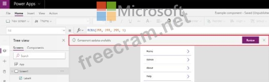 Question 16: You create and publish a canvas app component library to per...