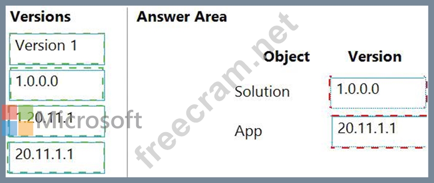 Which version numbers should you use? To answer, select the appropriate options in the answer area.