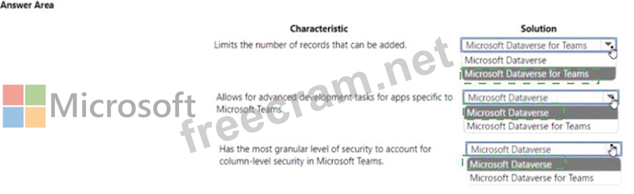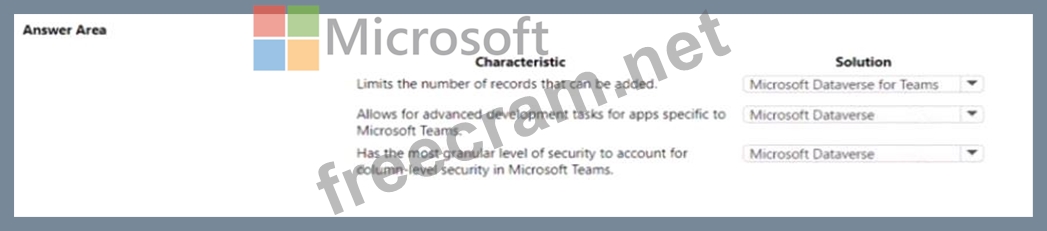 Question 20: A company uses Power Apps and Microsoft Dataverse. The compa...