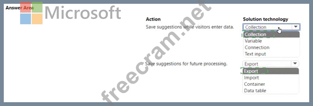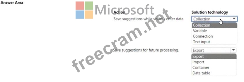 Question 15: A company uses Power Apps. The company gathers product impro...