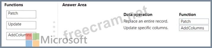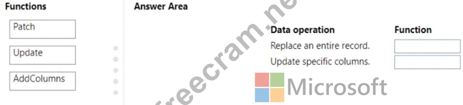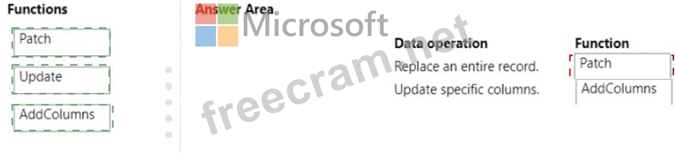Which functions should you use? To answer, drag the appropriate functions to the correct data operations.