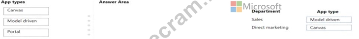 Which app type should you use? To answer, drag the appropriate app types to the correct departments. Each app type may be used once, more than once, or not at all. You may need to drag the split bar between panes or scroll to view content.