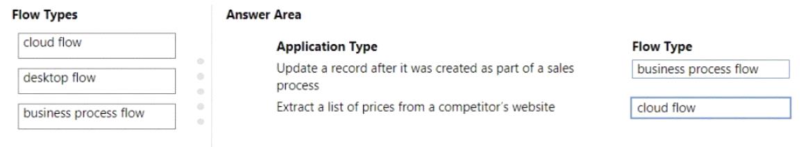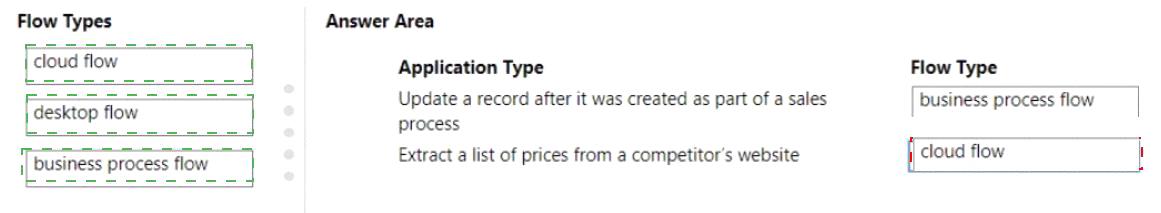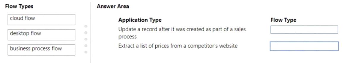 Which flow type should you use? To answer, drag the appropriate flow types to the correct application types.