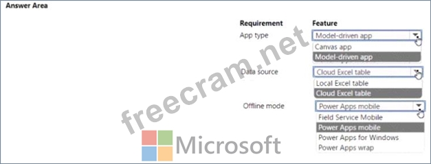 Question 35: A company uses Power Apps. You embed a canvas app in a model...