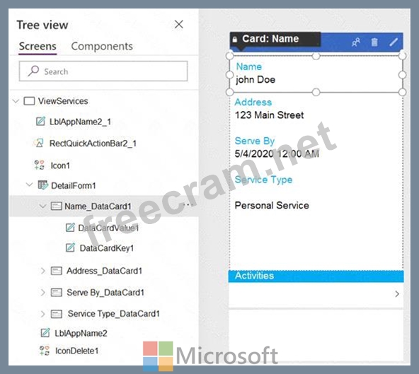 Question 81: You create a canvas app for a service company. Using the Tre...