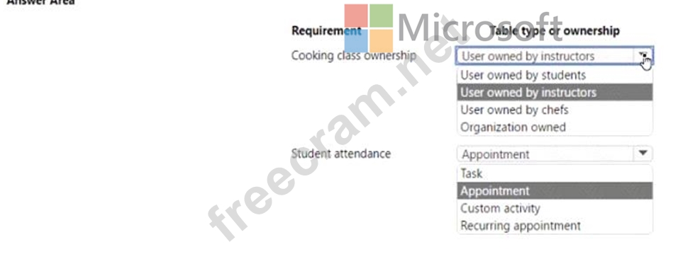 Question 15: A company creates an app that uses Microsoft Dataverse table...