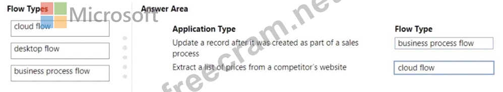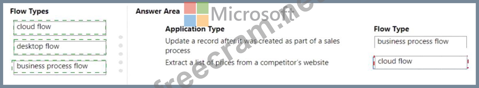 Which flow type should you use? To answer, drag the appropriate flow types to the correct application types.