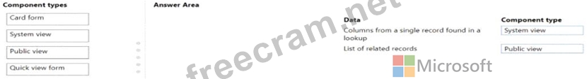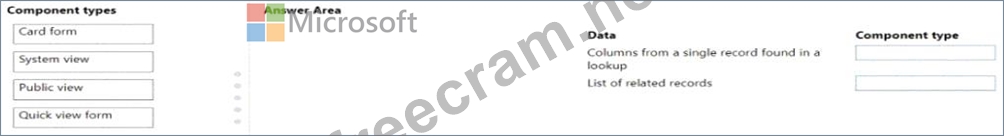 Which component types should you use? To answer, drag the appropriate component types to the correct data.