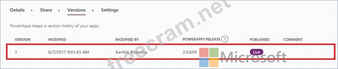 Question 40: You significantly modify a canvas app. You need to generate ...
