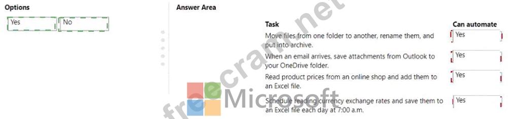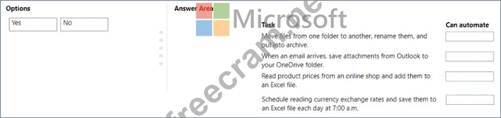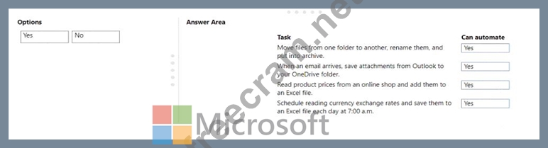 Which tasks can you automate? To answer, drag the appropriate can automate responses to the correct tasks.