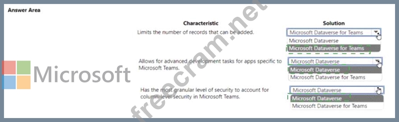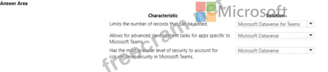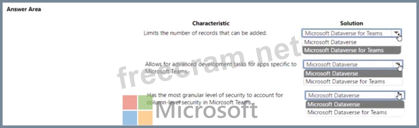 Question 41: A company creates an app that uses Microsoft Dataverse table...