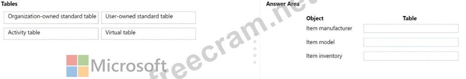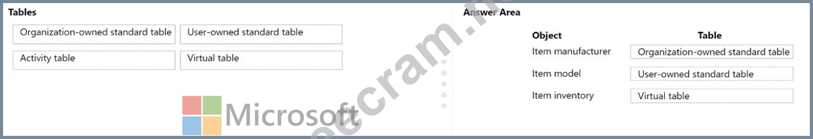 What should you use? To answer, drag the appropriate tables to the correct objects. Each table may be used once, more than once, or not at all. You may need to drag the split bar between panes or scroll to view content.