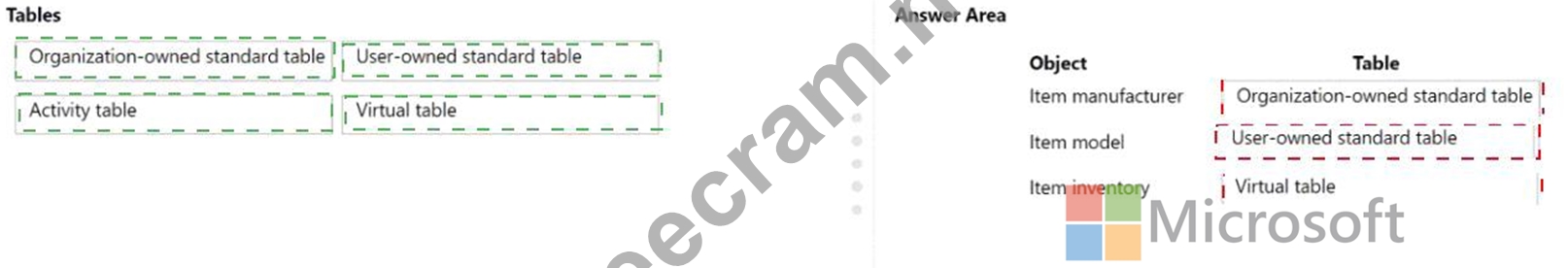 Question 41: A company creates an app that uses Microsoft Dataverse table...