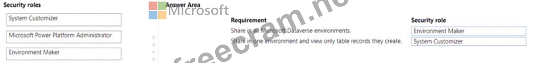 * Share model-driven apps in only one of the Microsoft Dataverse environments and view only table records that they create themselves.