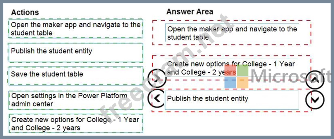 Question 41: A company creates an app that uses Microsoft Dataverse table...