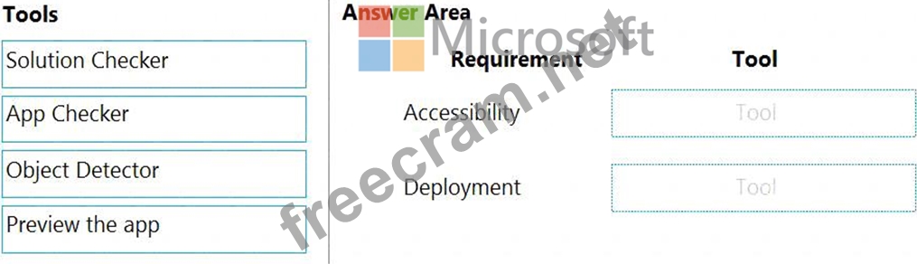 Scenario: Before deploying the app to production, you must ensure that the app conforms to Microsoft accessibility and performance guidelines.