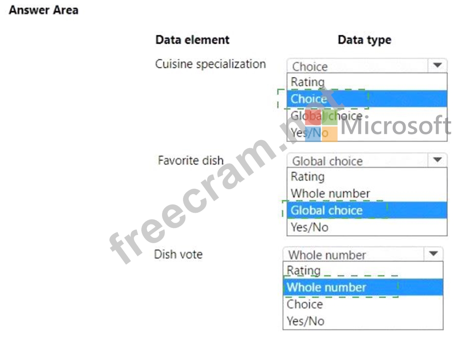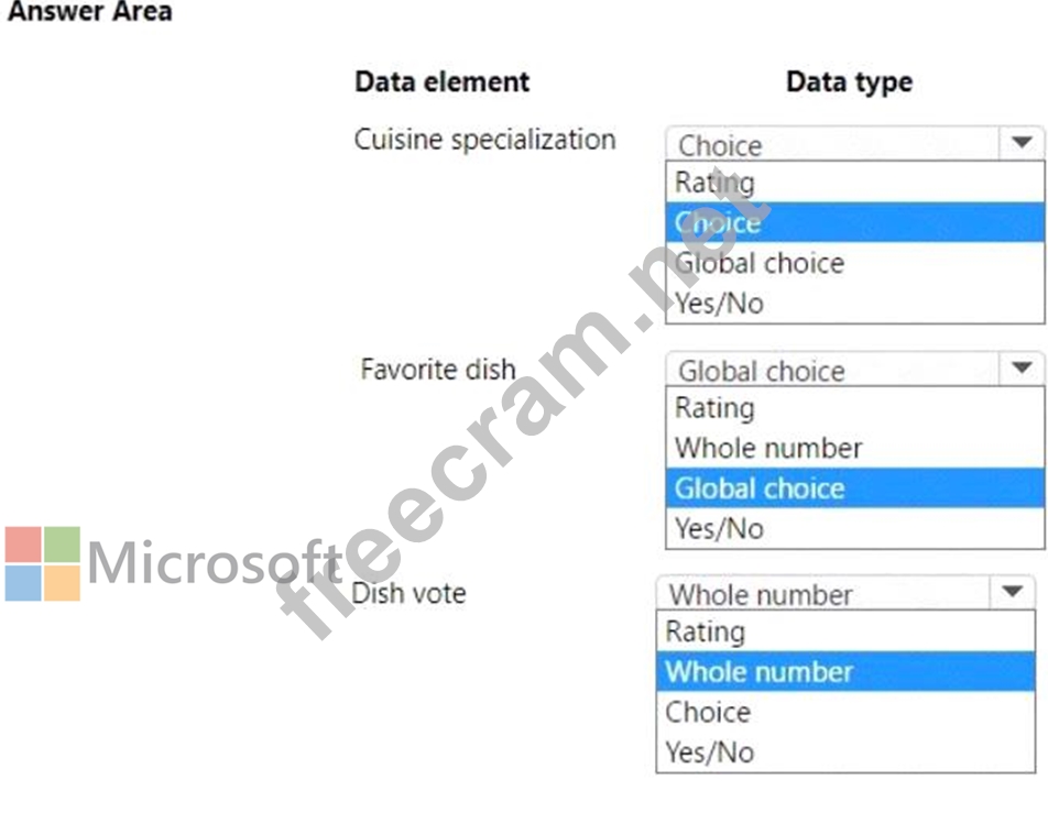 Which data type should you use? To answer, select the appropriate options in the answer area.