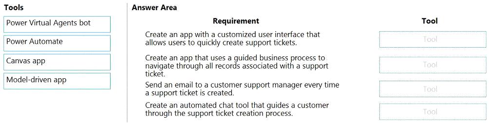 You need to identify the Power Platform tools required.