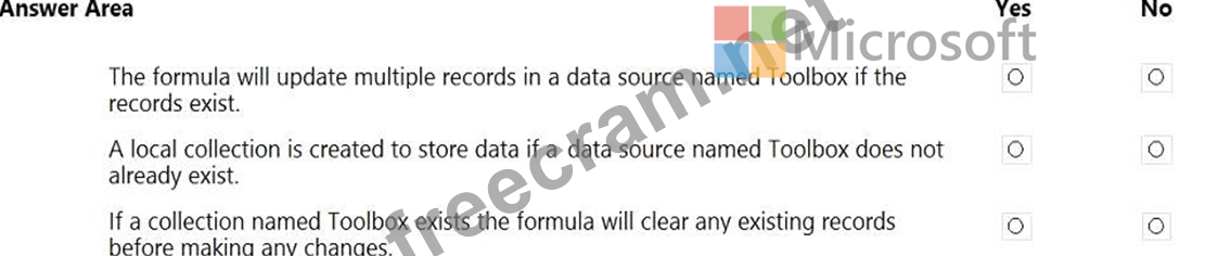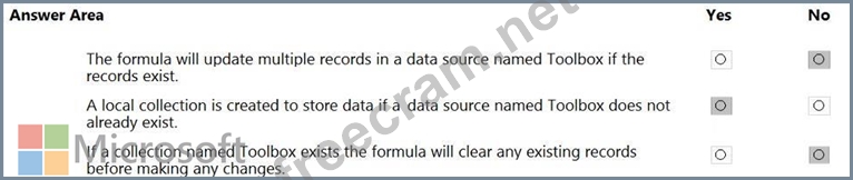 Question 95: You create a canvas app. You need to ensure that there are n...