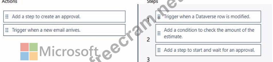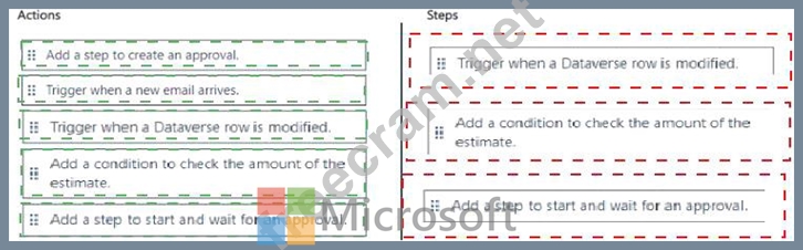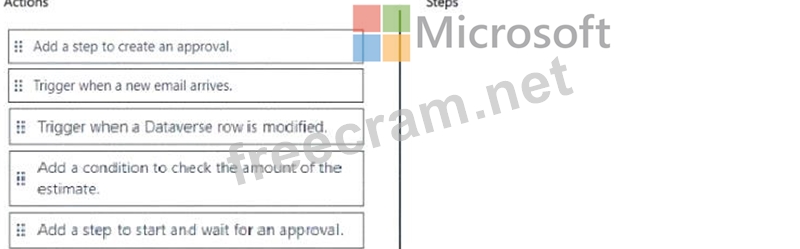 You need to create a Power Automate flow by using a minimum number of actions for the estimate approval process.