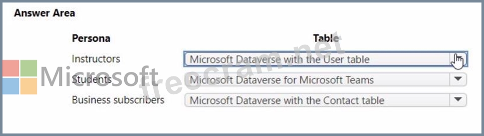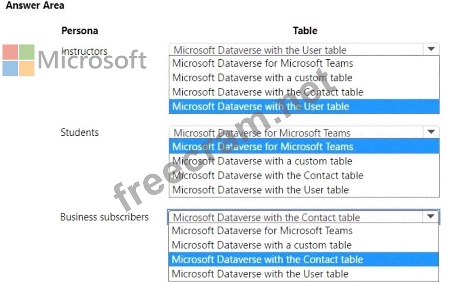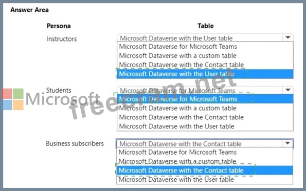 Question 39: A company creates an app that uses Microsoft Dataverse table...