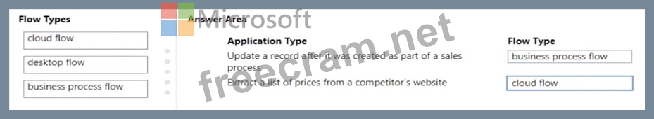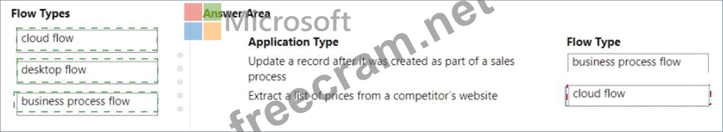 Which flow type should you use? To answer, drag the appropriate flow types to the correct application types.