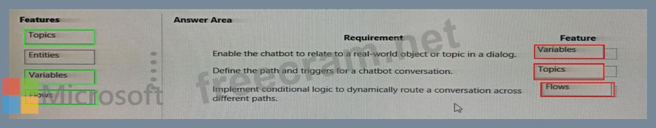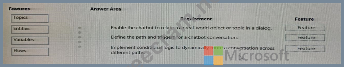 Which features should you use? To answer, drag the appropriate features to the correct requirements. Each feature may be used once, more than once, or not at all. You may need to drag the split bar between panes or scroll to view content.