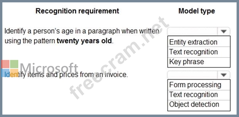 Which model types should you use? To answer, select the appropriate options in the answer area.