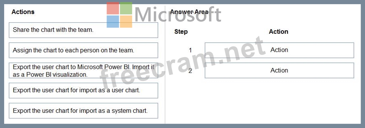 Which actions should the salesperson perform? To answer, drag the appropriate actions to the correct users. Each action may be used once, more than once, or not at all. You may need to drag the split bar between panes or scroll to view content.