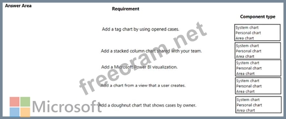 You ate a Dynamics 365 help desk administrator You need to create a dashboard that displays information on help desk cases that ate handled each week. Which dashboard components should you use? To answer, select the appropriate options in the answer are a. NOTE: Each correct selection is worth one point.