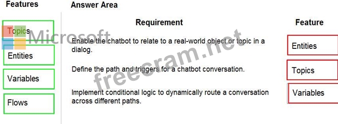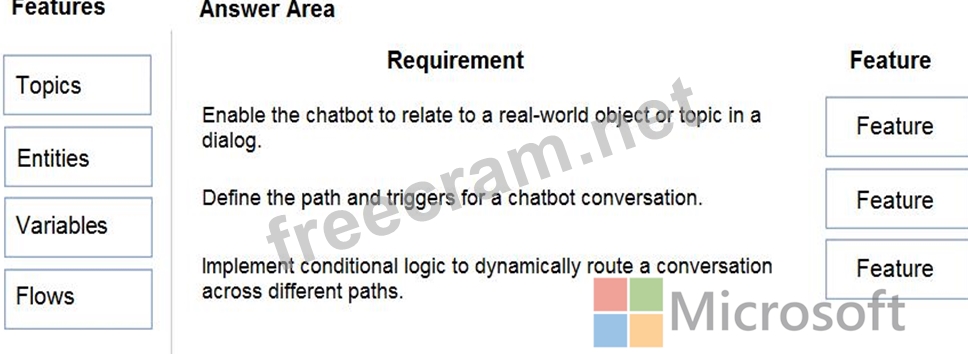 Which features should you use? To answer, drag the appropriate features to the correct requirements. Each feature may be used once, more than once, or not at all. You may need to drag the split bar between panes or scroll to view content.