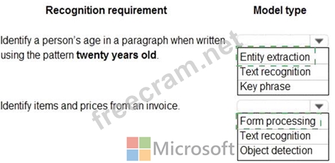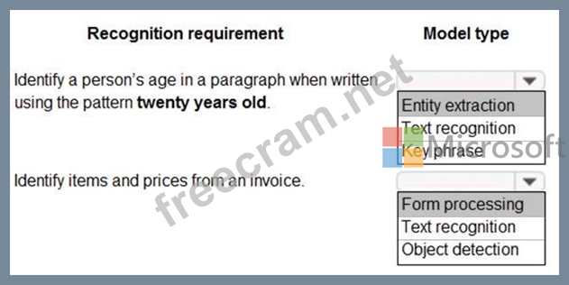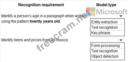 Which model types should you use? To answer, select the appropriate options in the answer area.