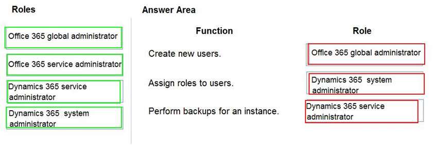 Which roles should you recommend? To answer, drag the appropriate roles to the correct functions. Each role may be used once, more than once, or not at all. You may need to drag the split bar between panes or scroll to view content.