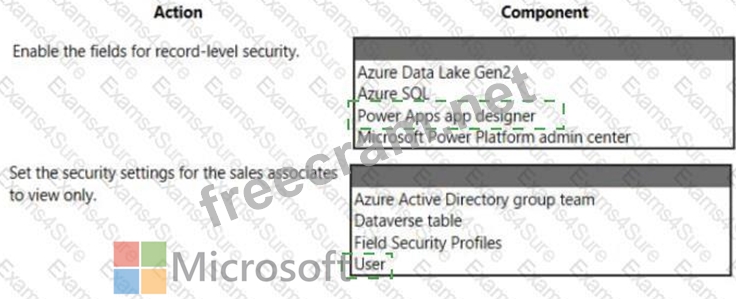 Which component for field-level security should you use? TO answer, select the appropriate options in the answer area.