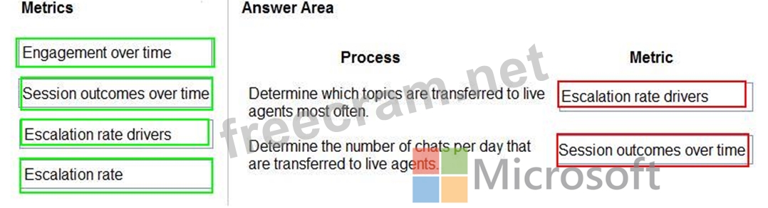 Which metrics should you use? To answer, drag the appropriate metrics to the correct processes. Each metric may be used once, more than once, or not at all. You may need to drag the split bar between panes or scroll to view content.