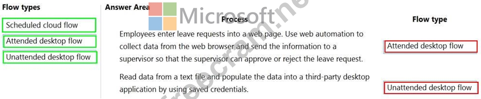 Which flow type should you use? To answer, drag the appropriate processes to the correct flow types. Each process may be used once, more than once, or not at all. You may need to drag the split bar between panes or scroll to view content.