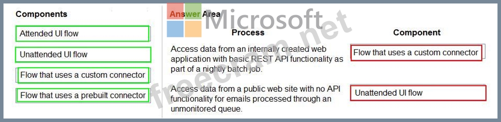 Which components should you recommend? To answer, drag the appropriate components to the correct processes. Each component may be used once, more than once, or not at all. You may need to drag the split bar between panes or scroll to view content.
