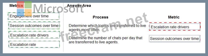 Which metrics should you use? To answer, drag the appropriate metrics to the correct processes. Each metric may be used once, more than once, or not at all. You may need to drag the split bar between panes or scroll to view content.