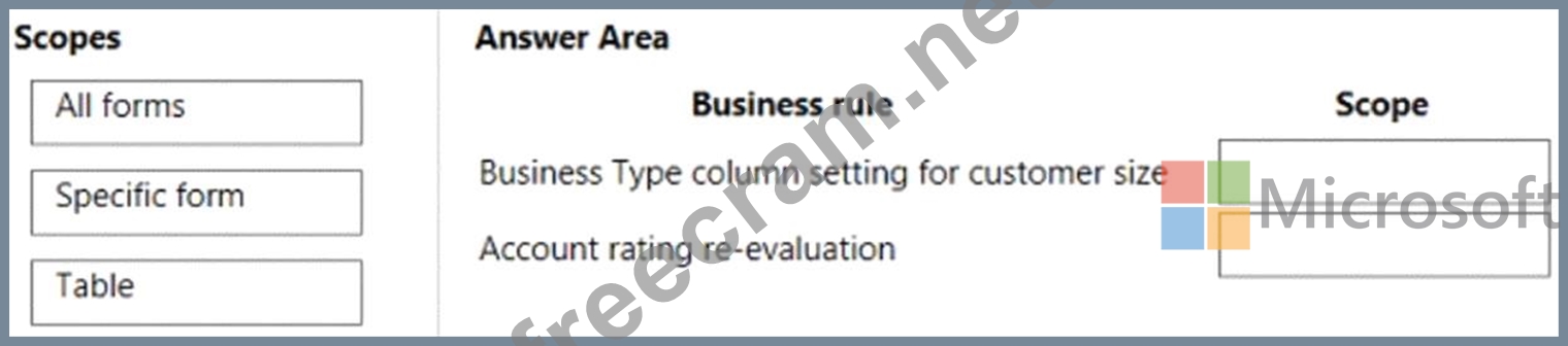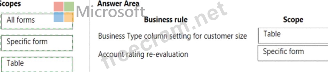 The scope of the business rule determines which forms the business rule will be applied. You set the scope, according to the following:
