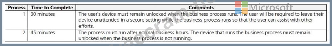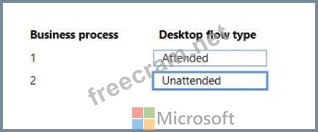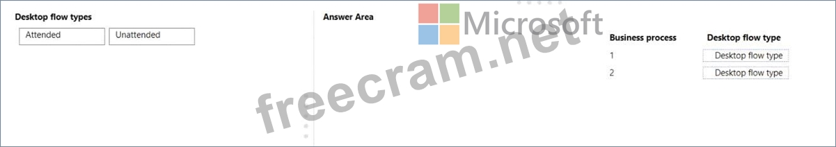 Which desktop flow type should you use? To answer, drag the appropriate desktop flow types to the correct business processes. Each desktop flow type may be used once, more than once, or not at all. You may need to drag the split bar between panes or scroll to view content.