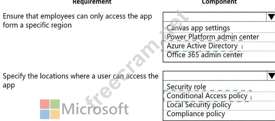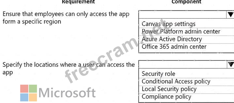 A company uses a canvas app to manage production resources in a specific region. Employees must be at company locations to use the app.