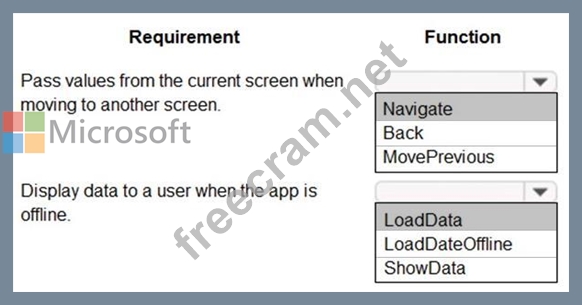 Question 19: You create a canvas app that uses data from a Microsoft SQL ...