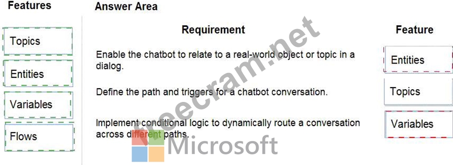 A topic has trigger phrases - these are phrases, keywords, or questions that a user is likely to type that is related to a specific issue - and conversation nodes - these are what you use to define how a bot should respond and what it should do.