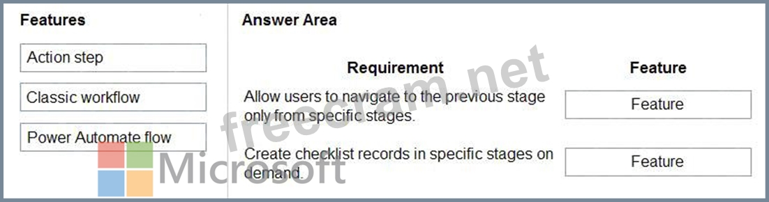 What should you implement? To answer, drag the appropriate features to the correct requirements. Each feature may be used once, more than once, or not at all. You may need to drag the split bar between panes or scroll to view content.