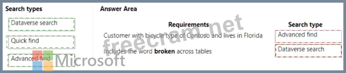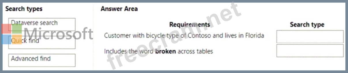 Which search should you configure? To answer, drag the appropriate search types to the correct requirements.